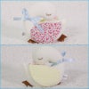 艶のあるBabyGooseブルーのギフトボックスに、ホワイトのリボンをかけたラッピングでお届けします。開ける前からワクワクドキドキするような形にこだわって作ったボックスだから、開けたときにワッと喜んでもらえます。
