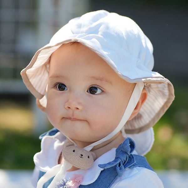 | サイズ/対象年齢 | 6ヶ月ころ~1.5歳くらい 頭周り:~52cm / つばの深さ…約5.5cm / 重さ約50g |