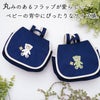 くまさんの刺しゅうはネイビーのリュックに映えるカラーで、大きくお入れしているので、ベビーの目にも留まりやすくなっています。