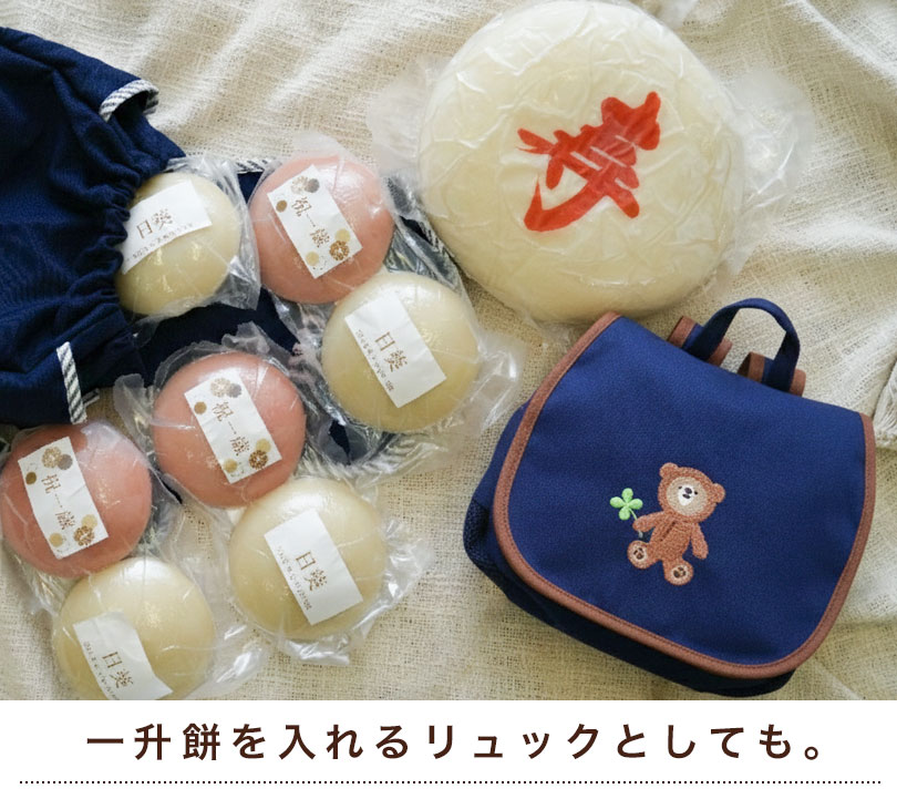 1歳の誕生日は、ベビーと一緒に祝う初めての誕生日。「一生食べ物に困らないように」「これからの一生が健やかに過ごせるように」そんな願いを込めて行う一升餅を入れるリュックとしてもお使いいただけます。一升餅が重くて泣き出してしまうベビーも、一生懸命歩こうとするベビーも、大切な思い出のワンシーンに華を添えてくれます。